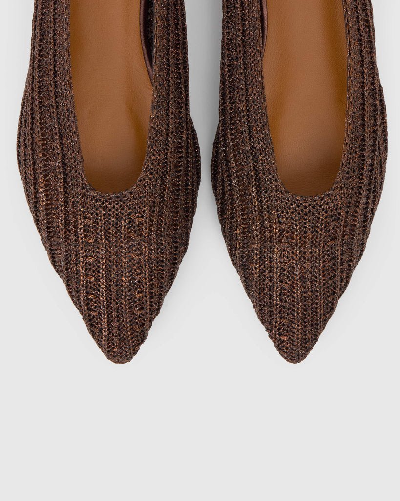 Bassi flat ballerina in lurex knit with metallic finish, padded insole, and cuerolite sole.