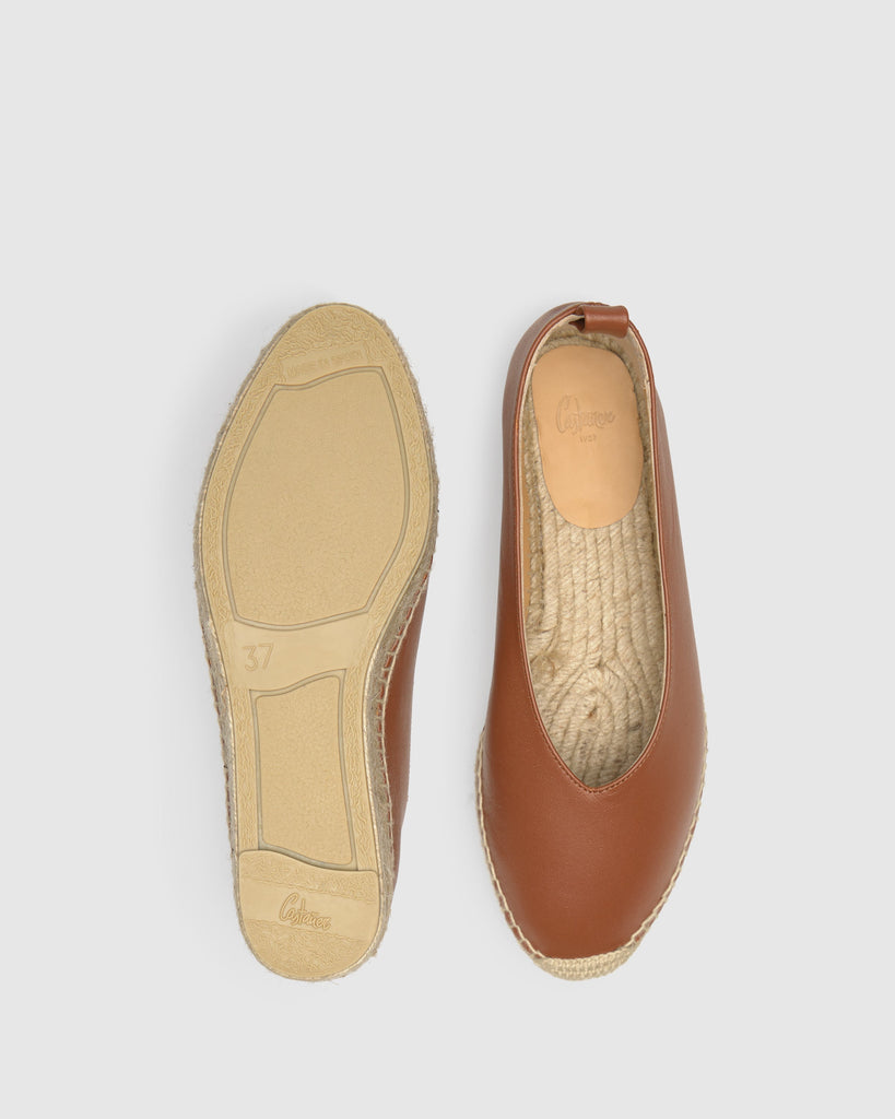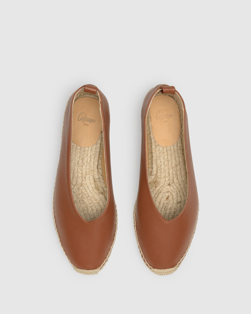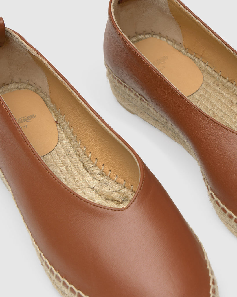 Gea espadrille ballerina flats, now in high-quality nappa leather. They feature a 4 cm mini platform, leather strap fastening with tip detailing and natural jute midsole.