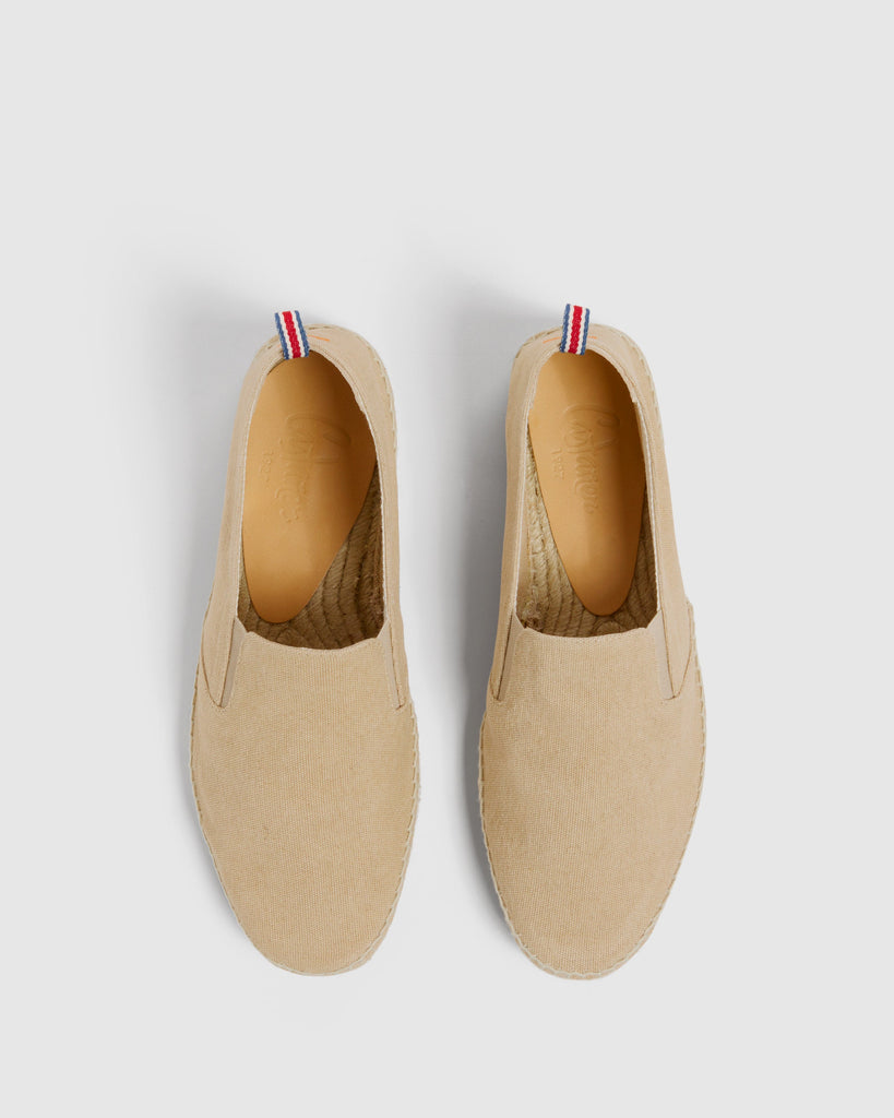 JOEL, PERFECT WITH YOUR DAILY LOOKS. HAND-MADE IN SPAIN WITH CERTIFIED-ORGANIC COTTON, THE JOEL ESPADRILLES FEATURE A ROUND CLOSED TOE, WASHED FINISH, ELASTIC SIDES AND VULCANISED-RUBBER SOLE.