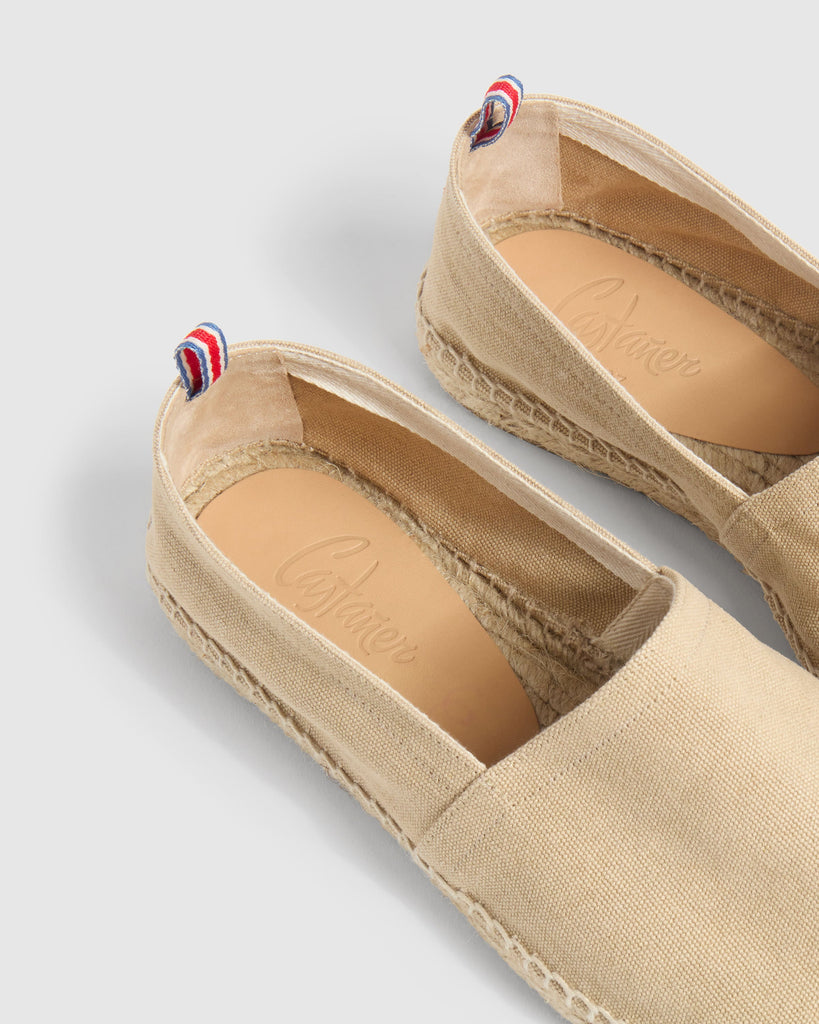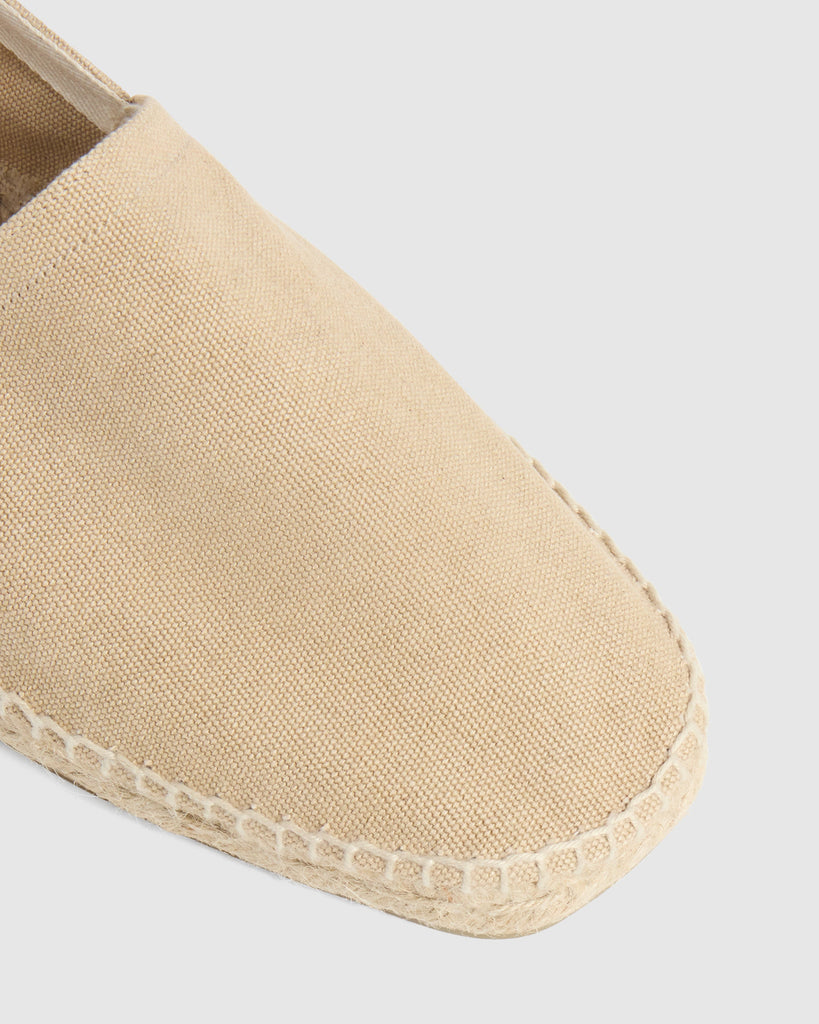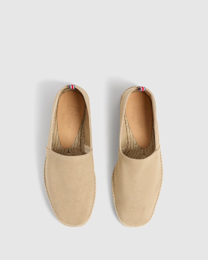 DETAILS THAT INSPIRE STYLE, SIMPLICITY AND CLASS. THE HEEL COUNTER IS A UNIQUE DETAIL IN THE MOST ICONIC MODELS. MADE WITH TOP QUALITY LINEN AND COTTON YARNS, ON ANTIQUE LOOMS FROM 1900 FULL OF HISTORY.