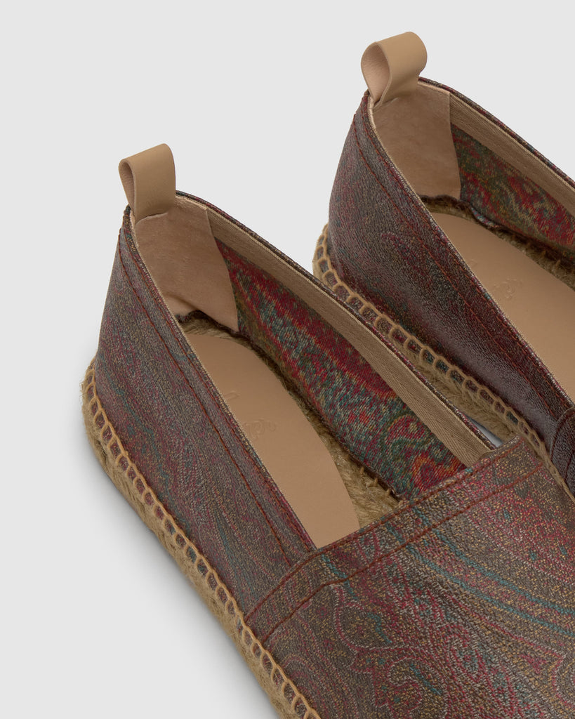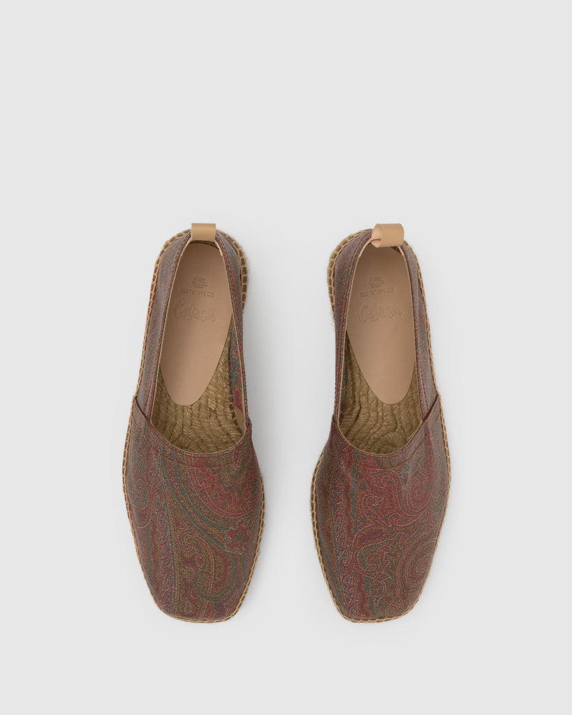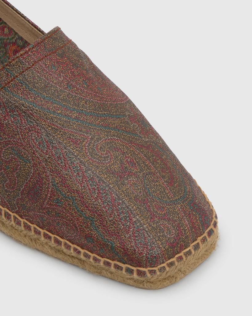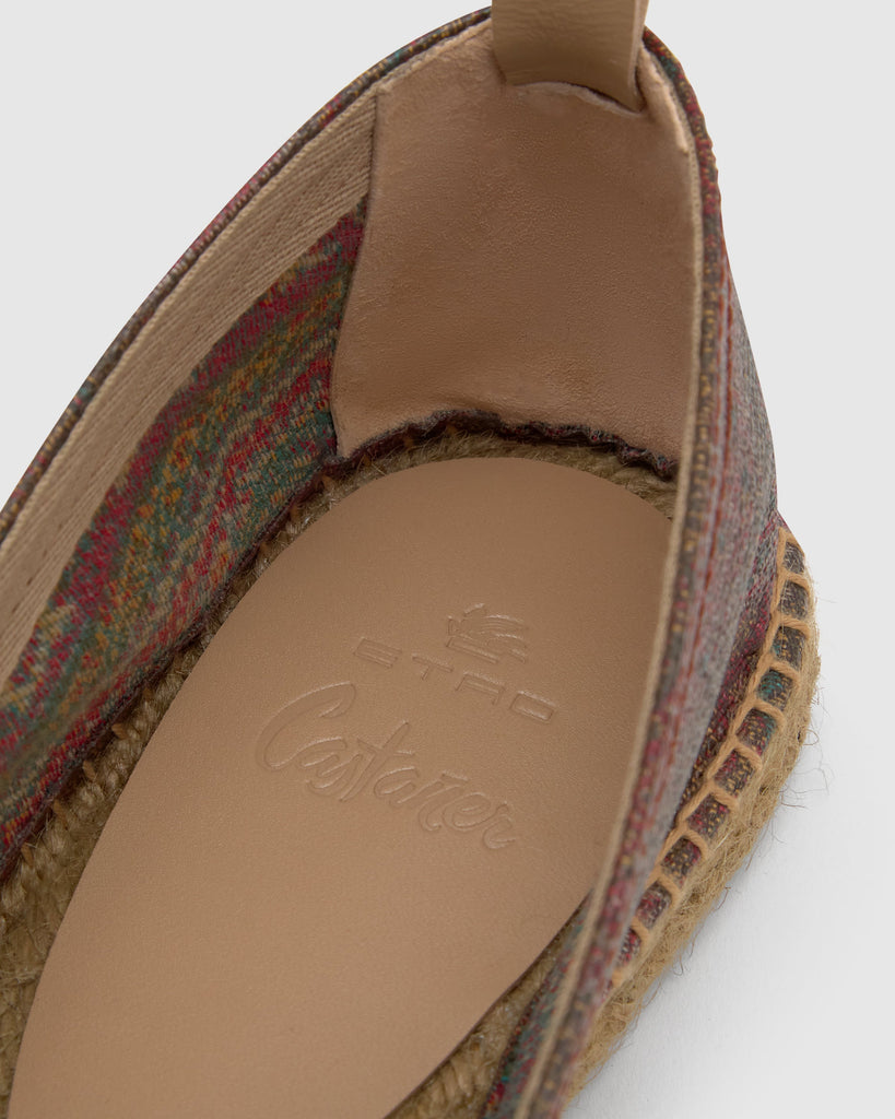 Timeless Pablo espadrille in ETRO's iconic jacquard fabric with a rubberized finish and Castañer's characteristic taupe jute sole.