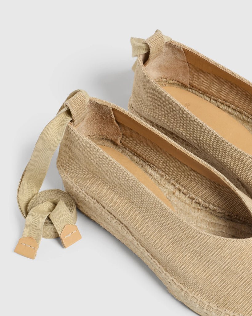 DETAILS THAT INSPIRE STYLE, SIMPLICITY AND CLASS. THE HEEL COUNTER IS A UNIQUE DETAIL IN THE MOST ICONIC MODELS. MADE WITH TOP QUALITY LINEN AND COTTON YARNS, ON ANTIQUE LOOMS FROM 1900 FULL OF HISTORY.