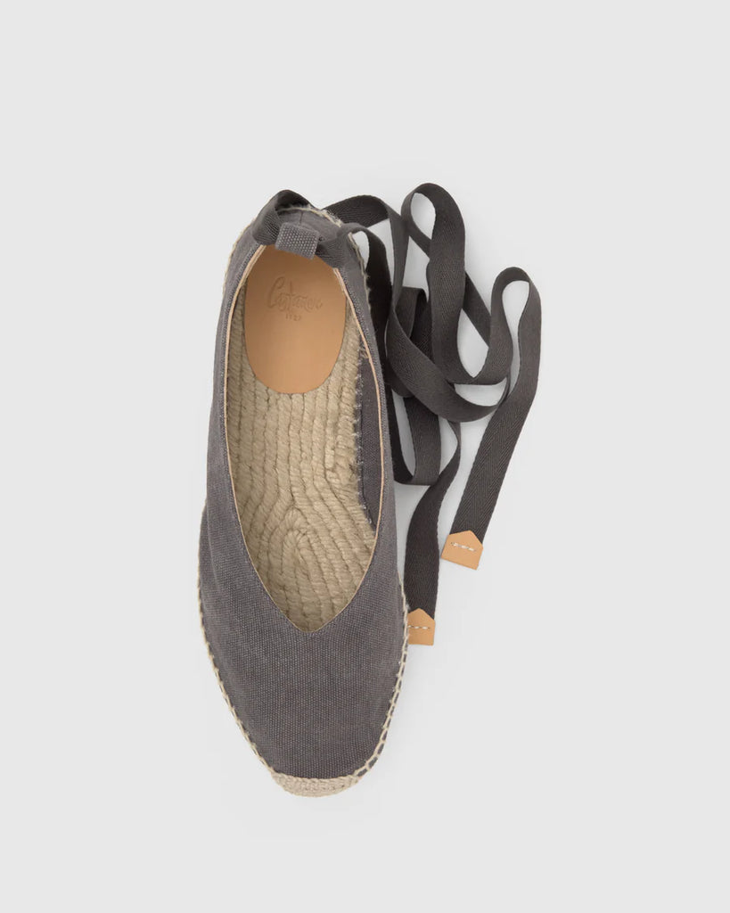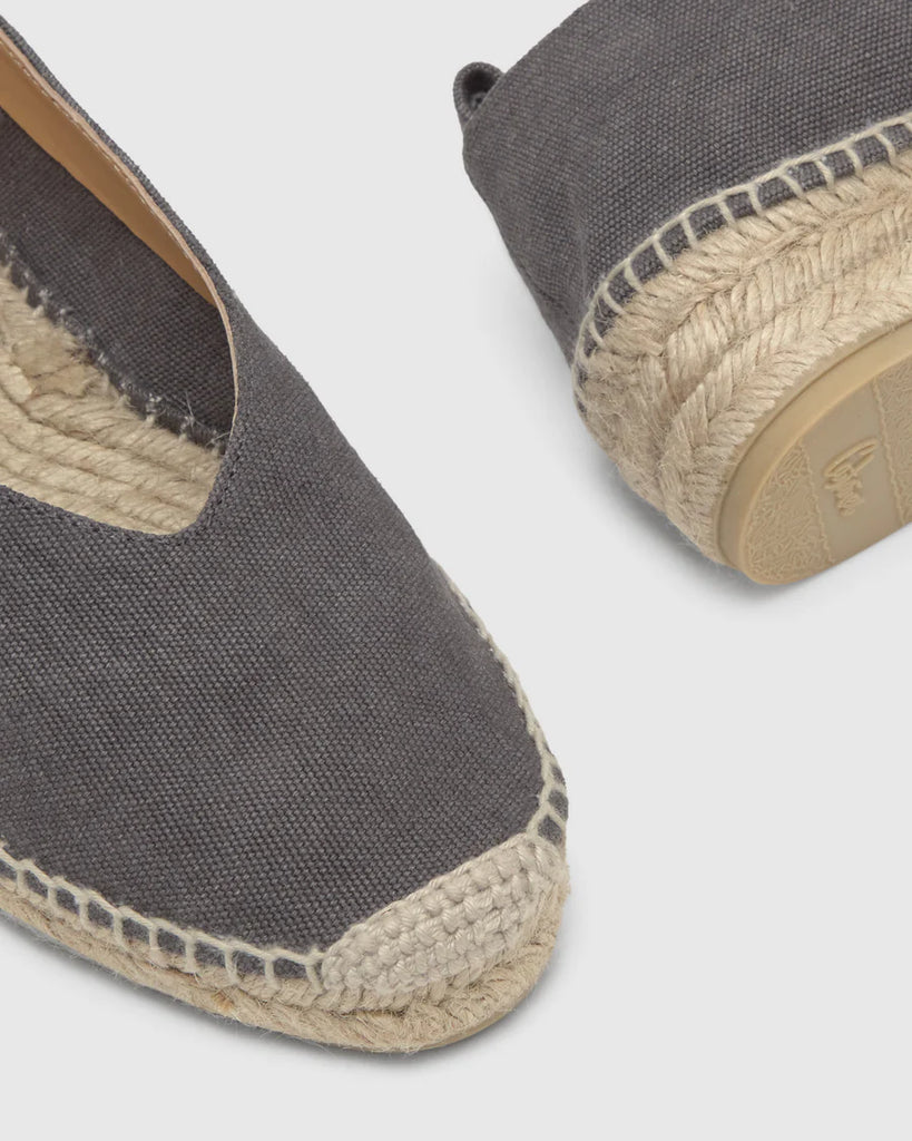 WEDGE BALLET ESPADRILLE MADE OF COTTON CANVAS. V SHAPE CUT AND ANKLE STRIPS. ROUNDED TIP. VULCANIZED SOLE OF JUTE NATURAL COLOUR AND RUBBER. SOLE OF 2cm