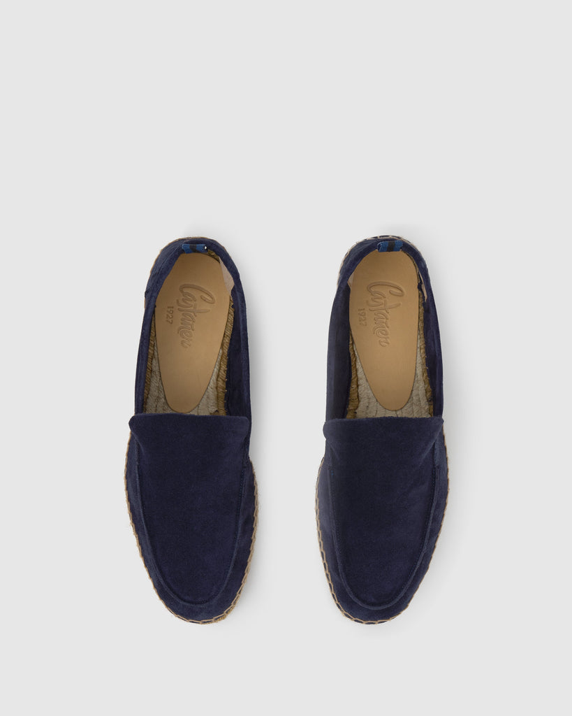 Nino moccasin-style espadrille in suede with a taupe jute sole.