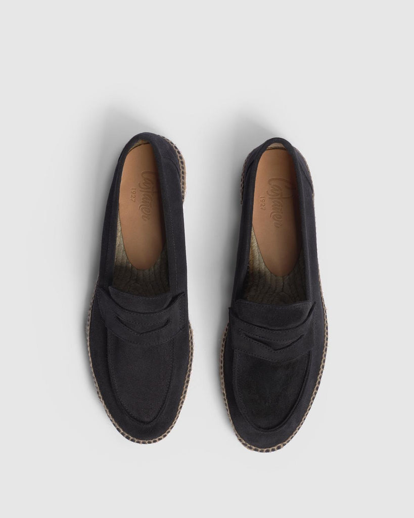 ESPADRILLE LOAFER MADE IN LEATHER SUEDE LEATHER. DESIGN WITH STRIP. TIP ROUNDED SOLE OF 2 cm OF VULCANIZED RUBBER COLOUR TAUPE.