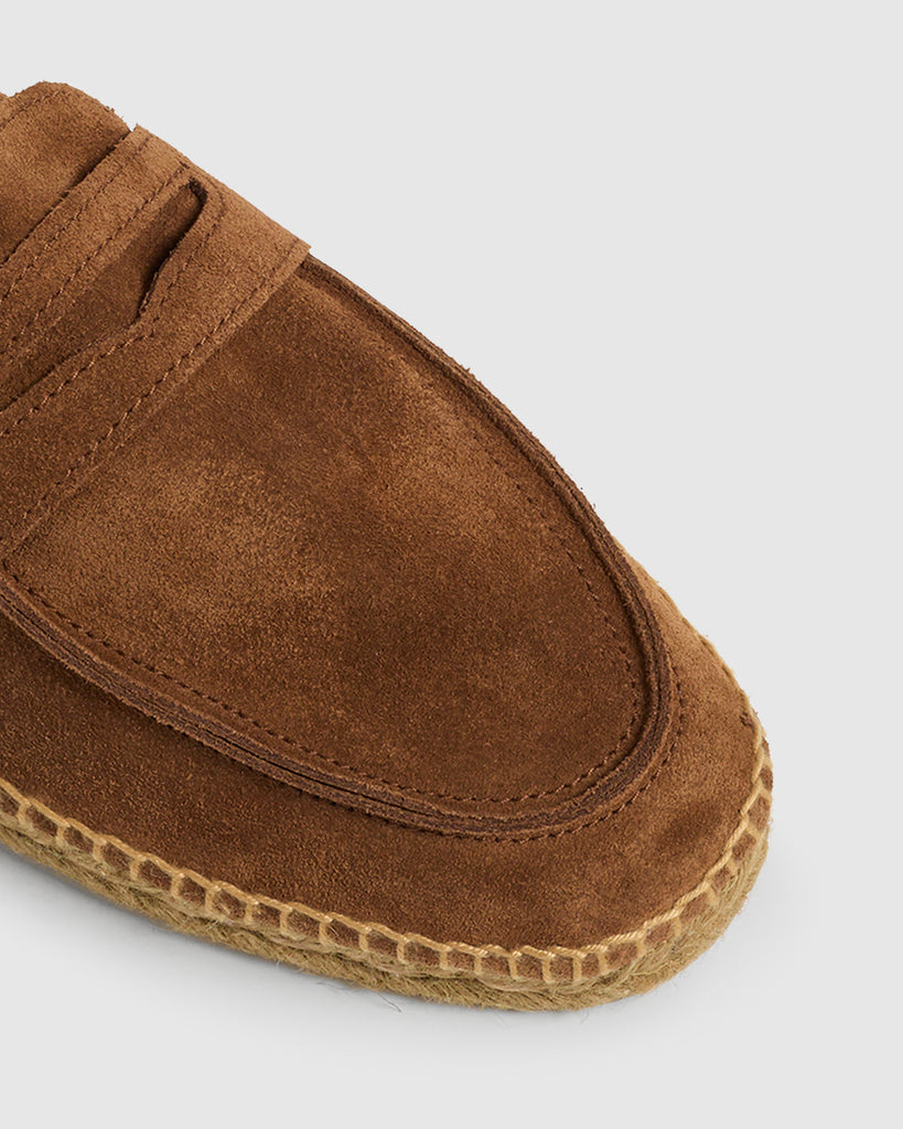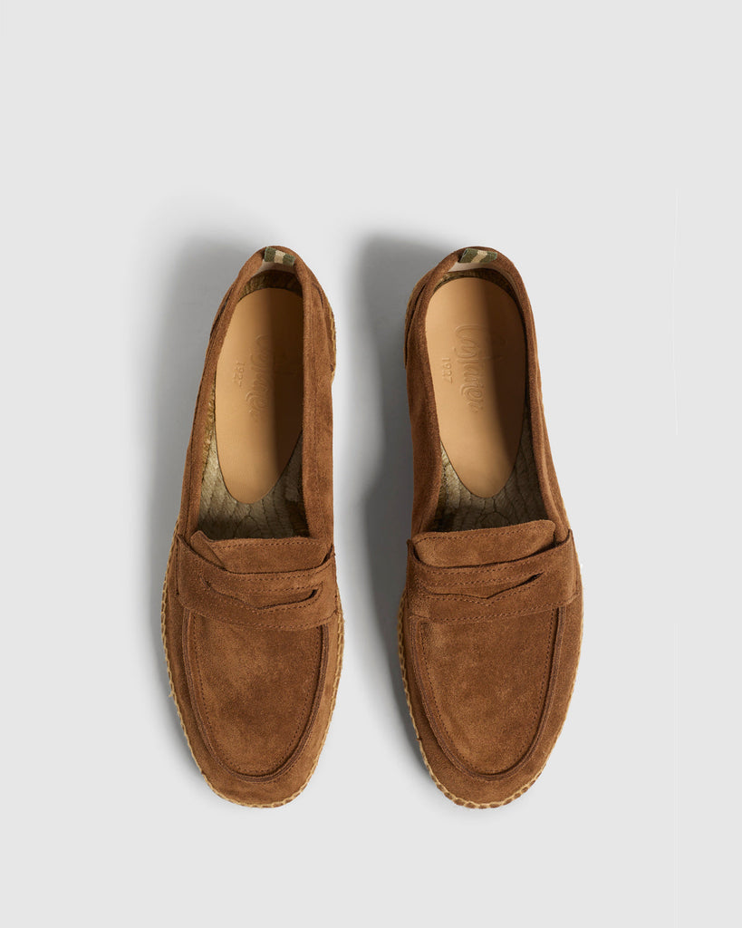 ESPADRILLE LOAFER MADE IN LEATHER SUEDE LEATHER. DESIGN WITH STRIP. TIP ROUNDED SOLE OF 2 cm OF VULCANIZED RUBBER COLOUR TAUPE.