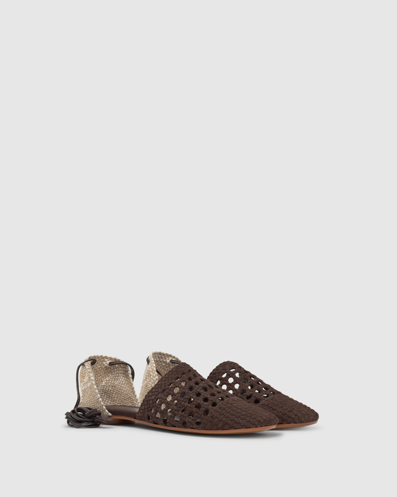 Gonza flat espadrille in hand-braided suede with matching lace-up closure and cushioned insole.