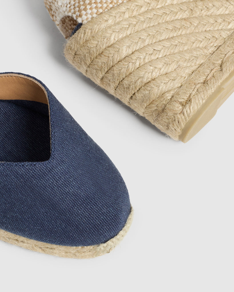 SHOW OFF YOUR UNIQUE STYLE WITH CHIARA, OUR ICONIC ESPADRILLES THAT YOU CAN WEAR ON THOSE SPECIAL OCCASIONS. MADE IN SPAIN WITH WASHED ORGANIC COTTON, THE CHIARA ESPADRILLES FEATURE A V FRONT, ROUND CLOSED TOE, TIE CLOSE, 9 CM WEDGE AND VULCANISED-RUBBER SOLE.