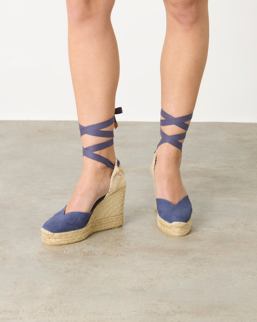WEDGE ESPADRILLE MADE OF COTTON CANVAS. V SHAPE CUT. BRAIDED DESIGN AT THE HEEL. LACE UP FASTENING. ROUNDED TIP. SOLE OF JUTE NATURAL COLOUR AND RUBBER. HEIGHT OF 11CM, WEDGE OF 8CM AND PLATFORM OF 3cm