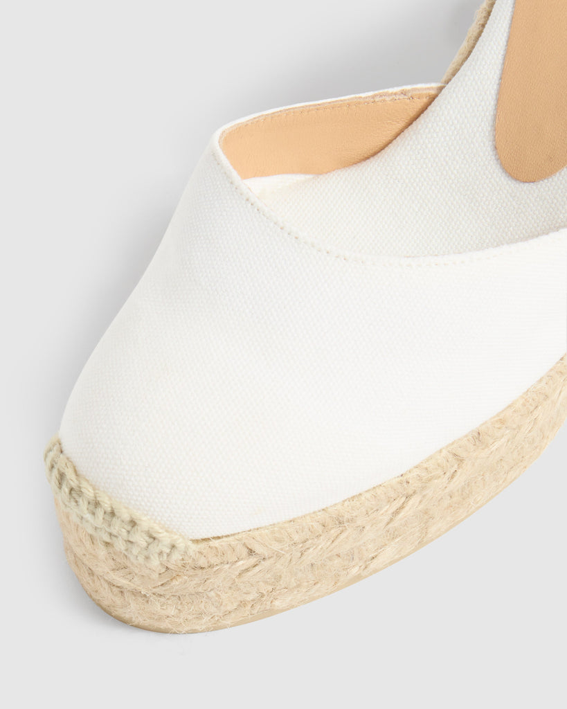 WEDGE ESPADRILLE MADE OF COTTON CANVAS. BRAIDED DESIGN AT THE HEEL. LACE UP FASTENING. ROUNDED TIP. VULCANIZED SOLE OF JUTE NATURAL COLOUR AND RUBBER. HEIGHT OF 11CM, WEDGE OF 8CM AND PLATFORM OF 3cm