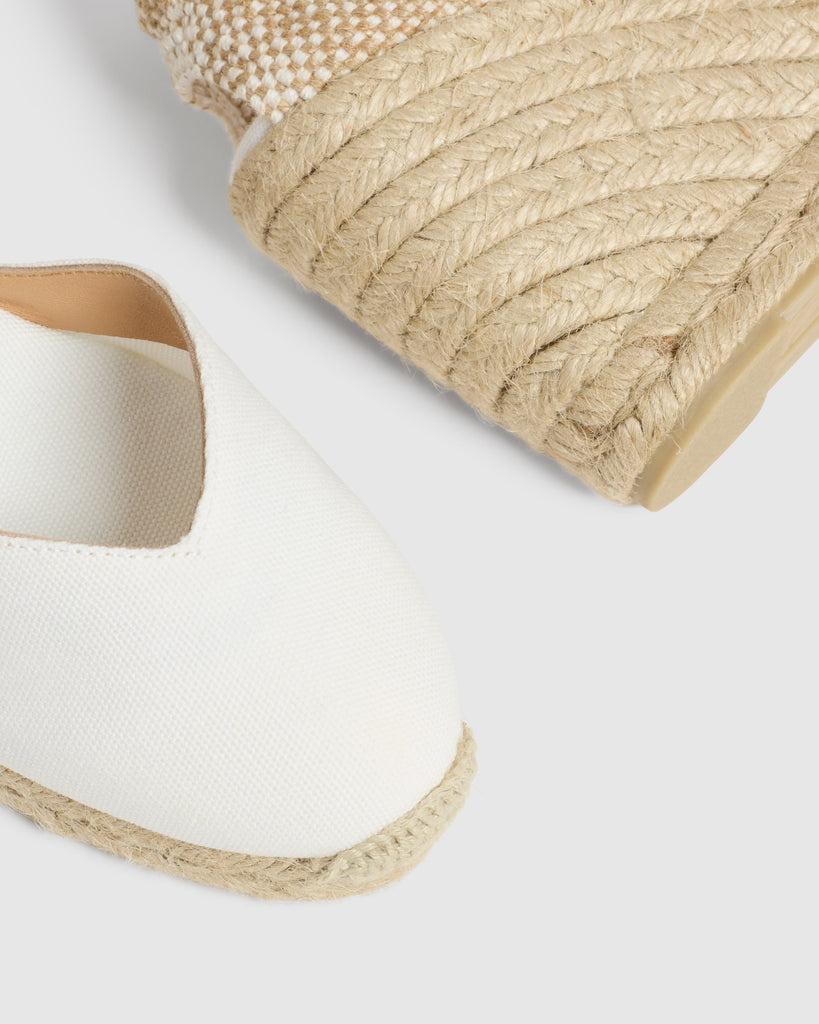 SHOW OFF YOUR UNIQUE STYLE WITH CHIARA, OUR ICONIC ESPADRILLES THAT YOU CAN WEAR ON THOSE SPECIAL OCCASIONS. MADE IN SPAIN WITH ORGANIC COTTON, THE CHIARA ESPADRILLES FEATURE A V FRONT, ROUND CLOSED TOE, TIE CLOSE, 9 CM WEDGE AND DOUBLE VULCANISED-RUBBER SOLE.