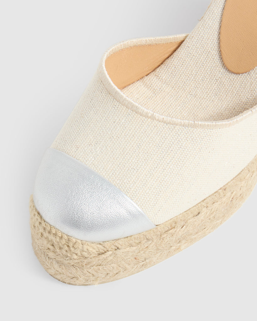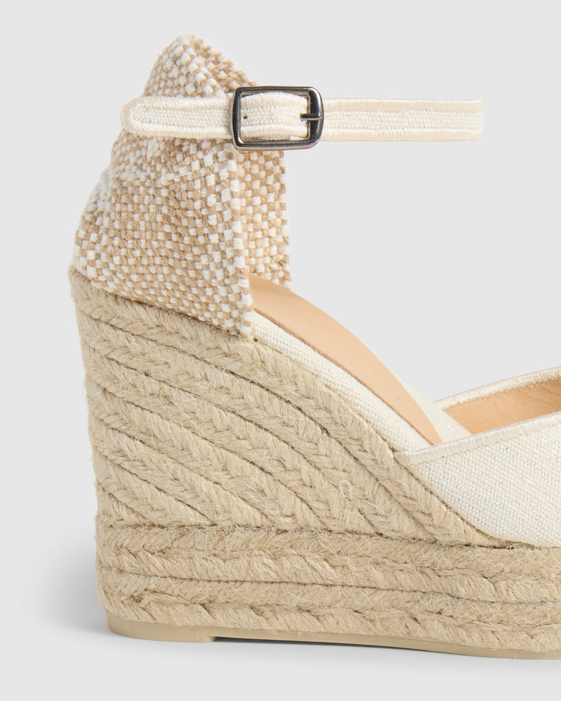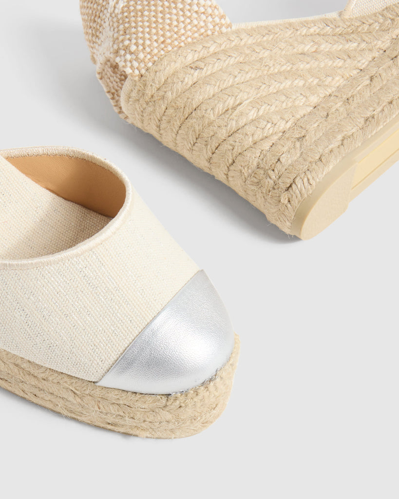 CATCH EVERYONE’S EYE WITH THE CONTRASTING ACCENT ON THE FRONT OF THE CAYA STYLE. MADE IN SPAIN WITH ORGANIC COTTON, THE CAYA ESPADRILLES FEATURE A ROUND CLOSED TOE, ANKLE STRAP WITH SIDE BUCKLE, 11 CM WEDGE AND DOUBLE VULCANISED-RUBBER SOLE.