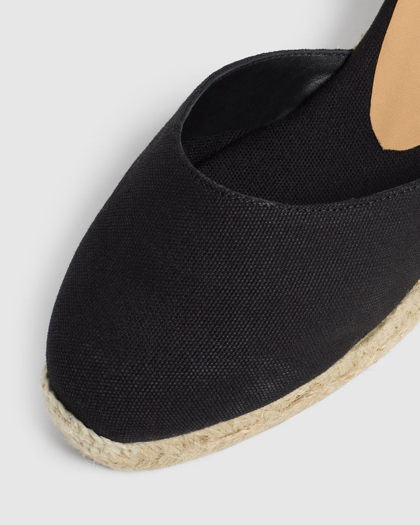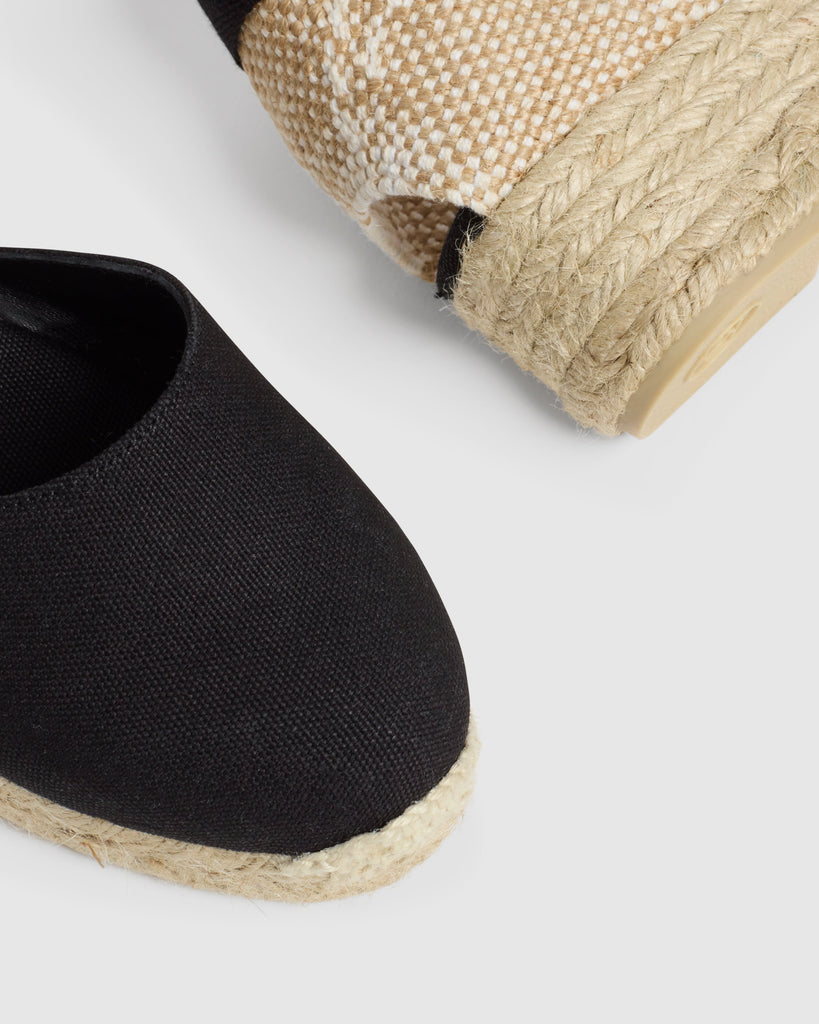ESPADRILLE WITH WEDGE MADE IN COTTON CANVAS. DESIGN WITH BRAIDED FABRIC ON THE HEEL. TIP CLOSED AND ROUNDED WITH CAP. SOLE OF VULCANIZED RUBBER NATURAL COLOUR. HEIGHT OF 5 CM, WEDGE OF 3 CM AND PLATFORM OF 2 cm