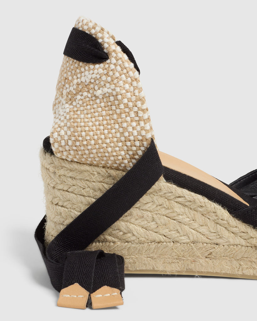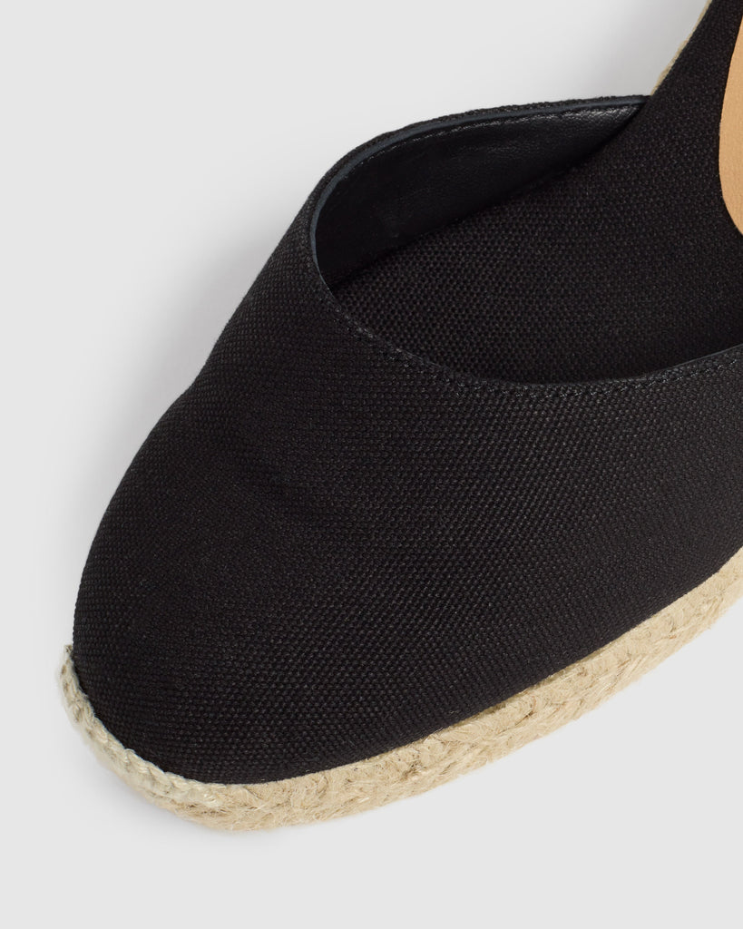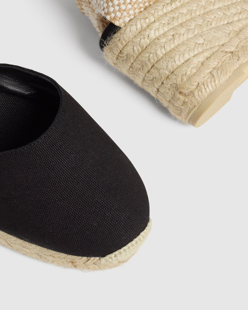 ESPADRILLE WITH WEDGE MADE IN COTTON CANVAS. DESIGN WITH BRAIDED FABRIC ON THE HEEL. TIP CLOSED AND ROUNDED WITH CAP. SOLE OF VULCANIZED RUBBER NATURAL COLOUR.HEIGH OF 7 CM, WEDGE OF 6 CM E PLATFORM OF 1 cm