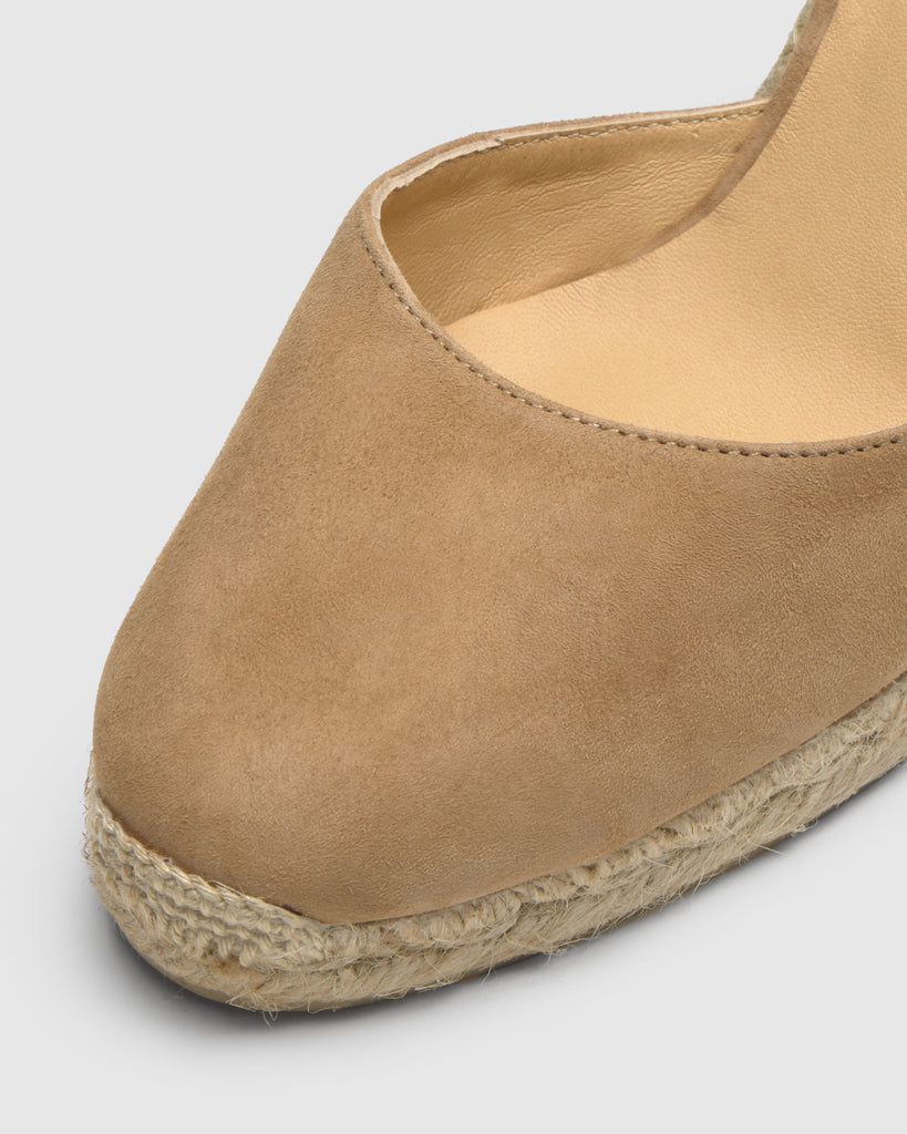 OUR ICONIC CARINA ESPADRILLES RETURN EVERY SEASON AS A TIMELESS ESSENTIAL AMONG YOUR WARDROBE BASICS. MADE IN SPAIN WITH SUEDE, THE CARINA ESPADRILLES FEATURE A ROUND CLOSED TOE, TIE CLOSE, 9 CM WEDGE AND VULCANISED-RUBBER SOLE.
