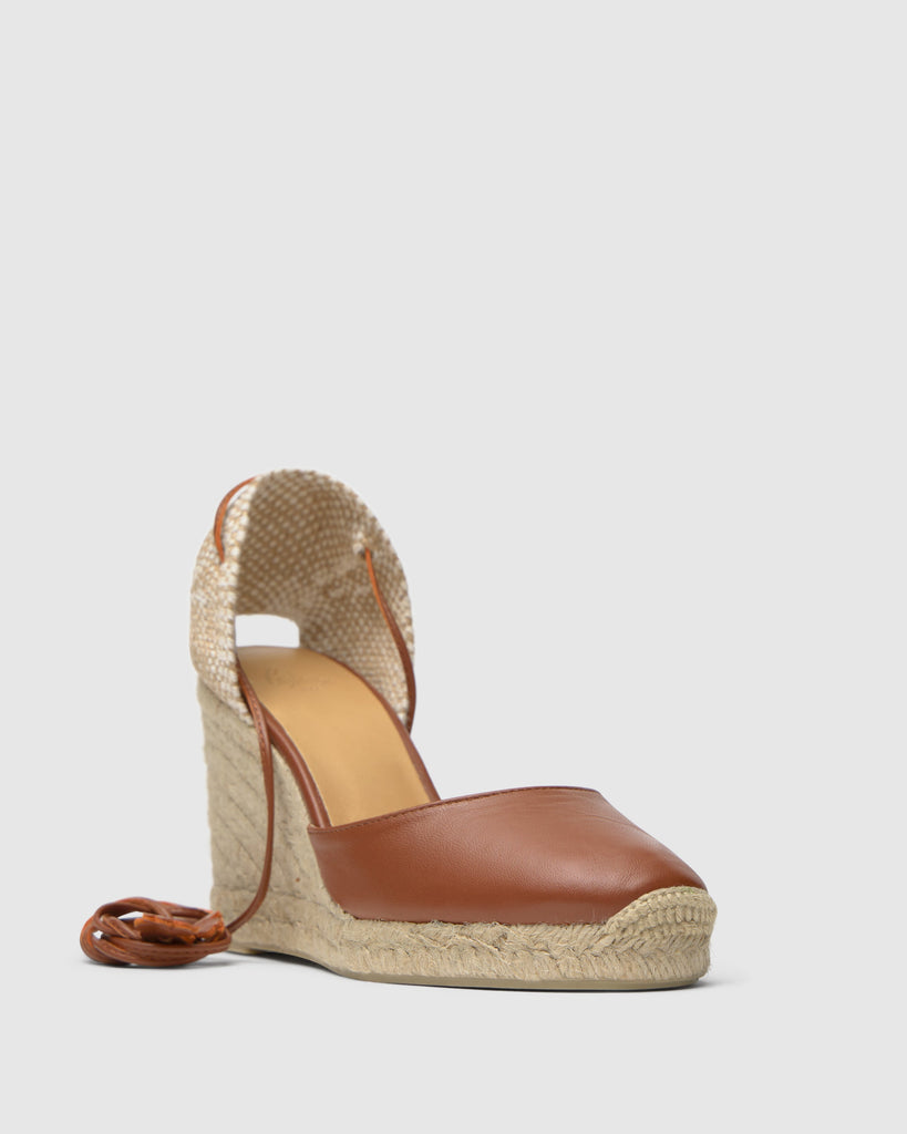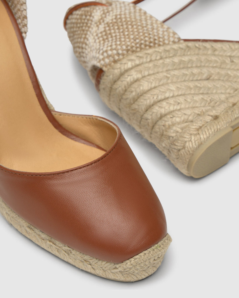 Castañer’s signature savoir-faire is embodied in the CARINA espadrilles, reinvented in high-quality nappa leather. They have a versatile leather tie fastening and 9 cm jute wedge.