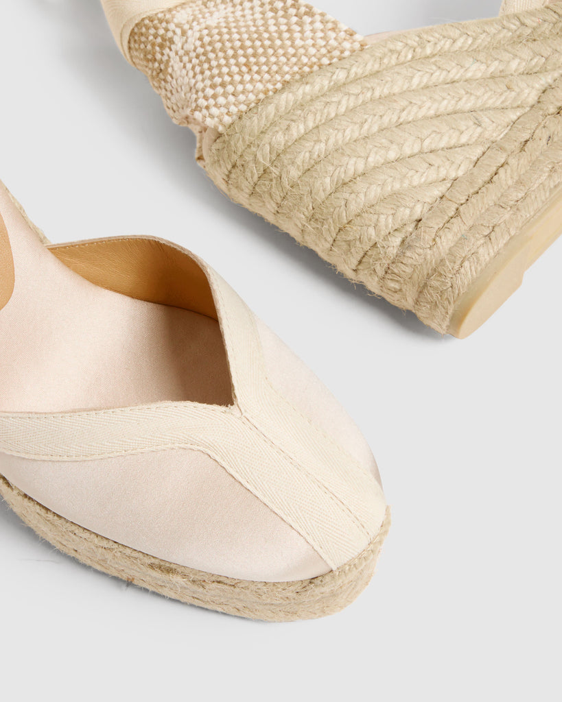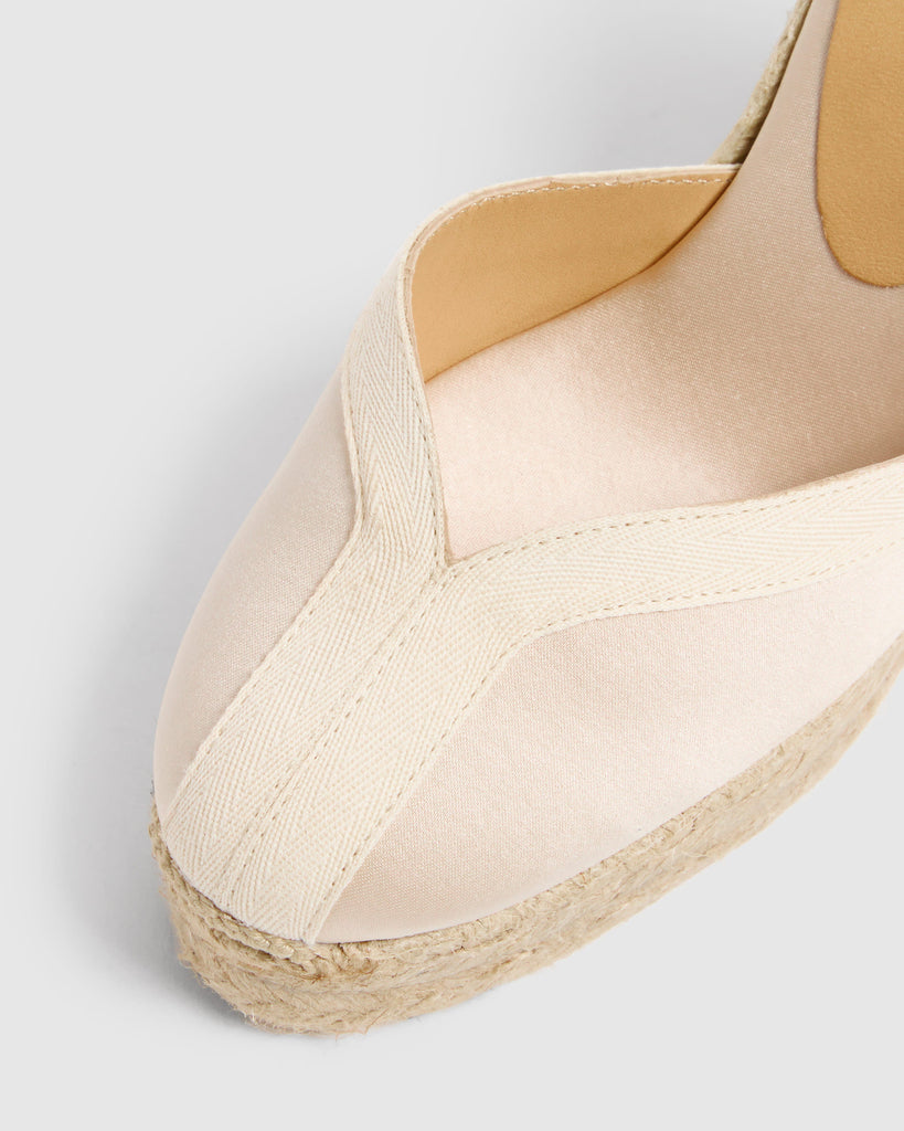 ESPADRILLE WITH WEDGE MADE IN SATIN. DESIGN WITH V NECKLINE. HEEL SUPPORT IN BRAIDED FABRIC. DOUBLE TAPE CLOSURE AT ANKLE. ROUND TOE. HEIGHT OF 11 CM, WEDGE OF 8 CM AND PLATFORM OF 3 CM
