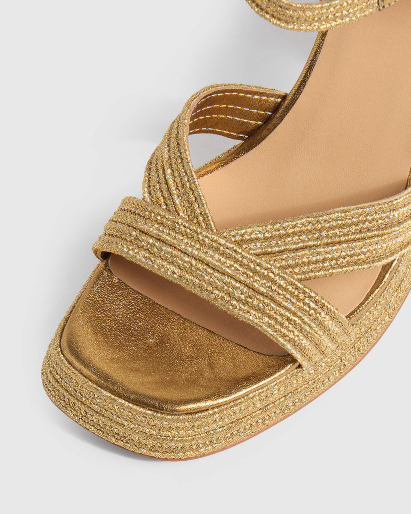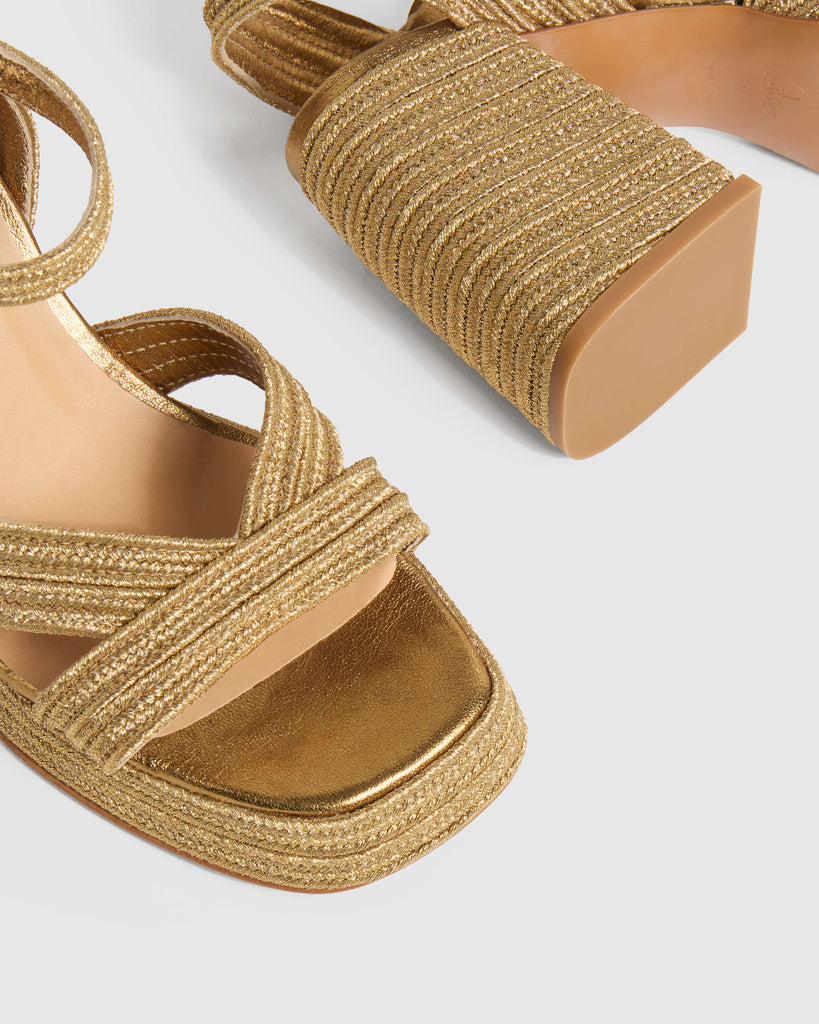 Square toe and ankle strap. Our Valle is a sandal made from a metallic braid, perfect for those summer nights. The look Jane Birkin would have sported in the 70s. Slow fashion made in Spain.