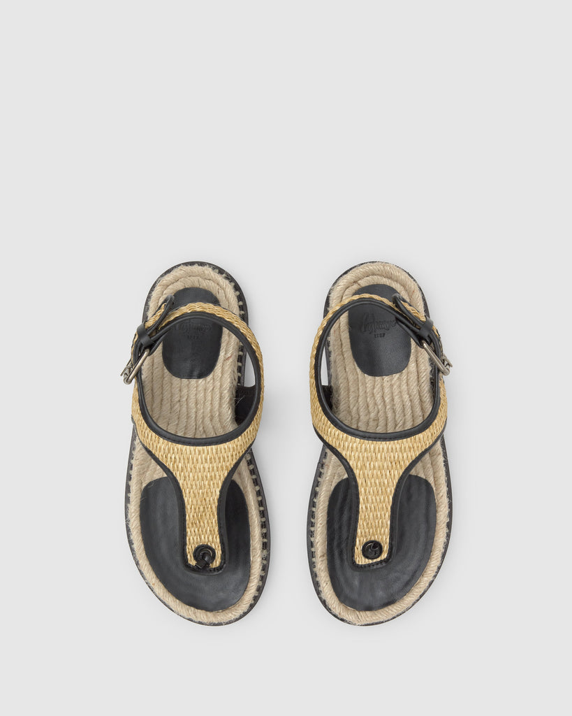 Tamesis toe sandal in braided raffia with leather trim, buckle closure and jute sole with rubber sole.