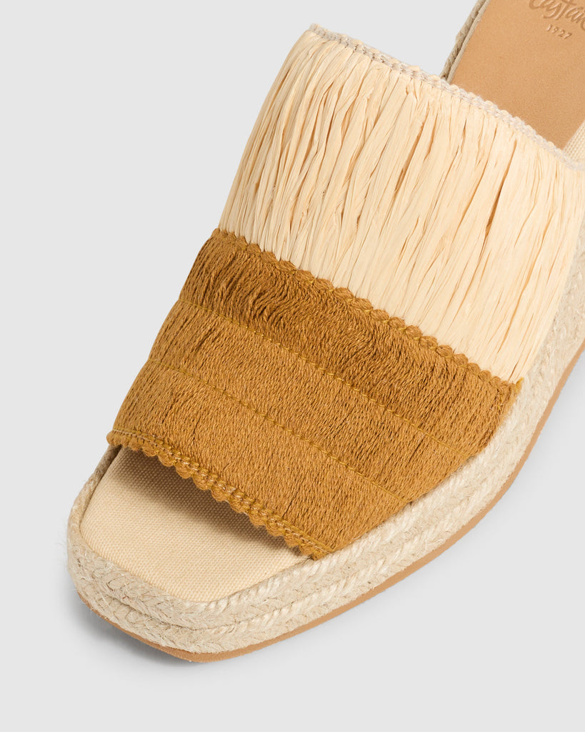 Tonia are our favourite square toe slip-on clogs. They are 8 cm high and made in raffia. They go perfectly with gauze, oversize blouses and that fresh sea breeze. Handmade in Spain.